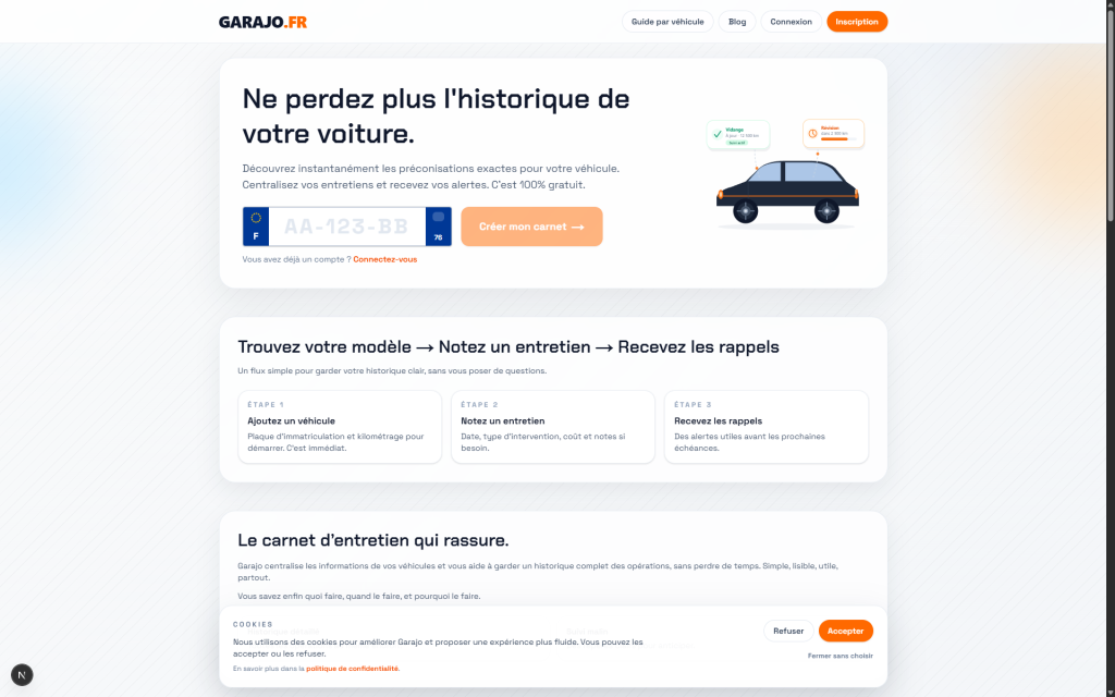 Si vous voulez reprendre le contrôle de l’entretien de votre voiture sans complexité inutile, vous pouvez essayer dès maintenant : https://garajo.fr.